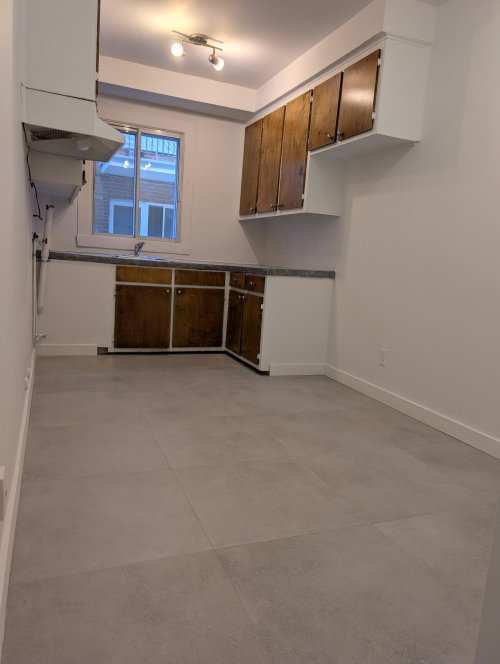 Entrée laveuse dans la cuisine, buanderie au sous-sol